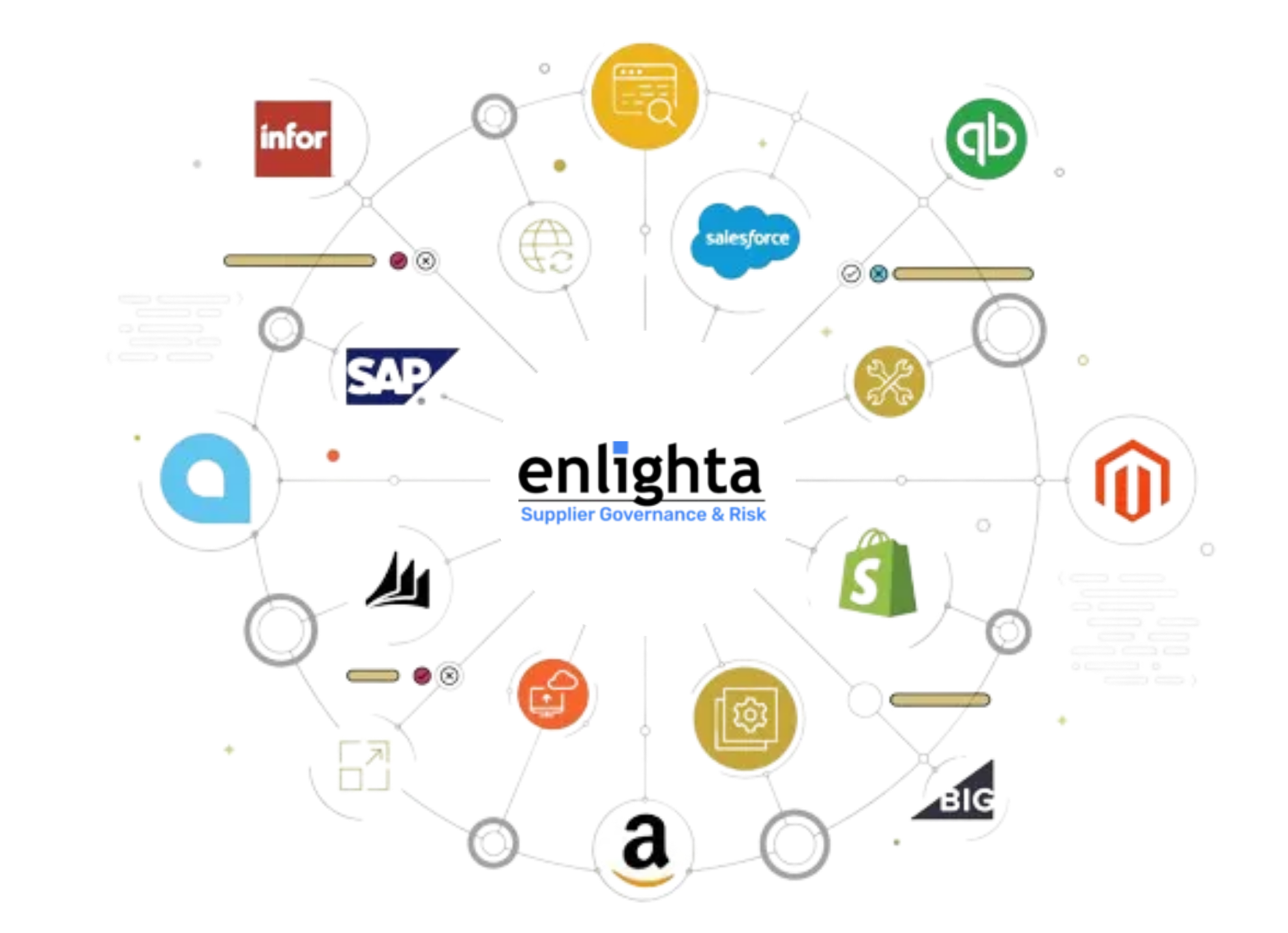 Integrate seamlessly with your existing ERPs, data feeds, and other Enlighta Solutions (Govern, TPRM, and Procure) for a 360° view of vendor data and more.