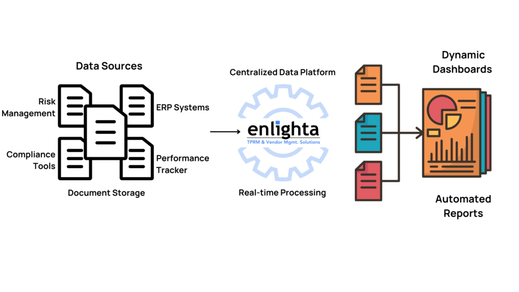 They need a centralized  platform that pulls in data from all relevant systems and presents a holistic view of each vendor, with zero manual effort. With its Master data management capabilities, Enlighta consolidates data from all relevant sources into a centralized platform. The platform’s transparency features provide comprehensive reports and dashboards, facilitating insight into vendor performance and compliance and ensuring adherence to regulatory obligations.