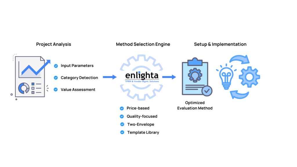 Enlighta simplifies this challenge by offering flexible, automated evaluation tools that adjust based on the nature of the project. Whether it’s a price-based evaluation for commodity procurement, a quality-focused approach for complex services, or a two-envelope system for government bids, Enlighta’s platform allows procurement teams to configure and automate the right evaluation method.